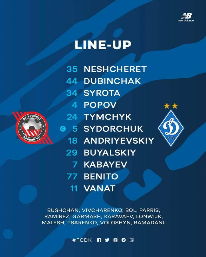 «Динамо»: Нещерет, Попов, Сидорчук, Кабаев, Ванат, Андриевский, Тымчик, Буяльский, Сирота, Дубинчак, Бенито.