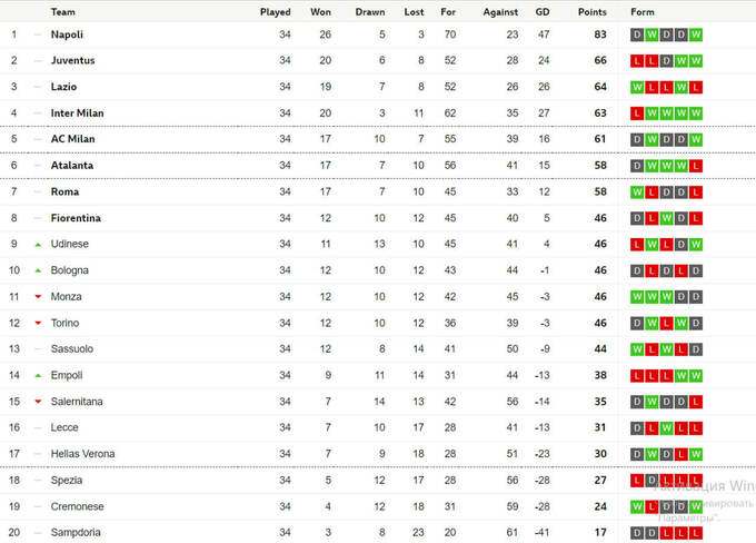 После поражения «Самдория» лишилась математических шансов сохранить прописку в элитном дивизионе Италии и досрочно вылетела в Серию B.