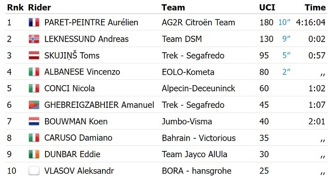 Французский велогонщик команды «Ag2r Citroen» Орельен Паре-Пентр стал победителем четвертого этапа Джиро д’Италия-2023. В финишном спринте из отрыва он опередил норвежца Андреаса Лекнессунда из команды DSM, который перехватил у Ремко Эвенпула розовую майку лидера общего зачета.