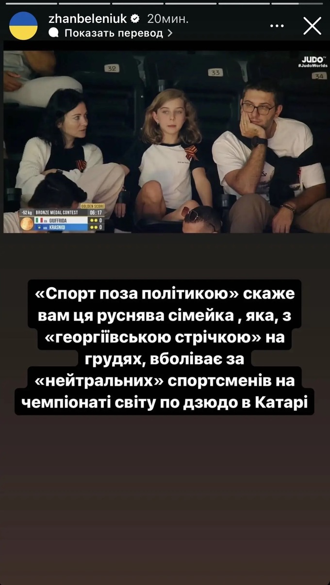 «Это были зрители, и их попросили убрать ленточки, но они не захотели. Поэтому они были выведены с места проведения соревнований, и им запретили посещась соревнования», – сказал представитель IJF.