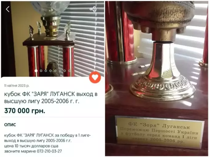 Кубок луганской «Зари», которым клуб был награжден за победу в Первой лиге 2005/06, люди из так называемой лнр продавали на OLX.