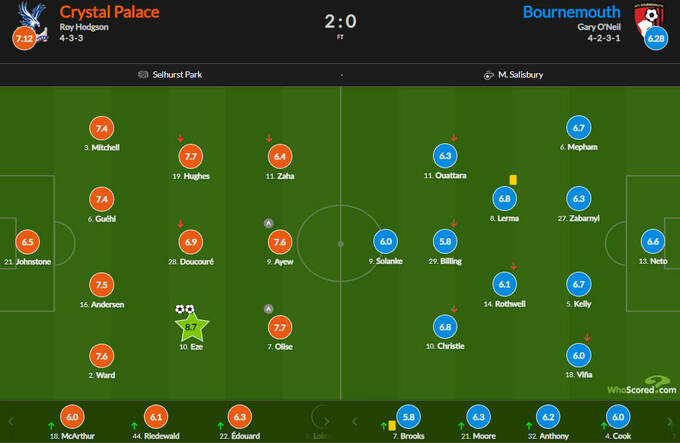 Оценки WhoScored за матч Кристал Пэлас – Борнмут – 2:0