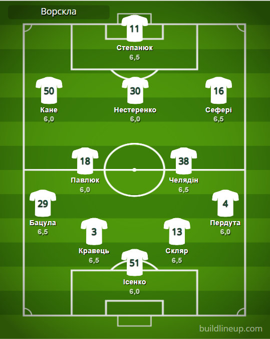 «Ворскла»: Исенко – Бацула, Кравец, Скляр (Рамирес, 90+2), Пердута – Павлюк, Челядин (Черныш, 81) – Кане (Лопес, 85), Нестеренко (Кулаковский, 90+1), Сефери – Степанюк.