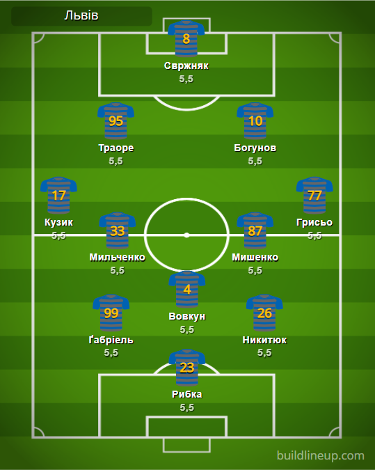 «Львов» (замены): Симинин – 6,0, Бугай – 6,0, В. Михайлив – 6,0, Ременяк – 6,0, Алибеков – б/о.