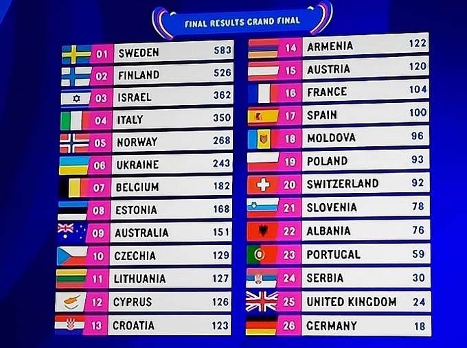 Швеция выиграла Евровидение 2023 в Ливерпуле. Украина – на шестой позиции