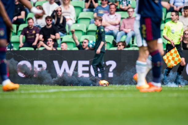 Поединок 32-го тура чемпионата Нидерландов между «Гронингеном» и «Аяксом» был остановлен на 9-й минуте из-за беспорядков болельщиков.