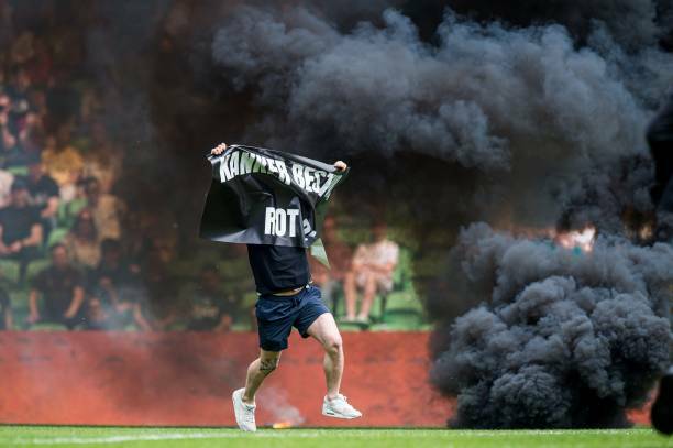 The match between Groningen and Ajax was suspended due to fan invasion. They are protesting against the team's relegation.pic.twitter.com/7kcDlyMdUR