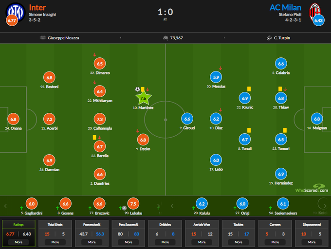 Оценки WhoScored за матч Интер – Милан – 1:0