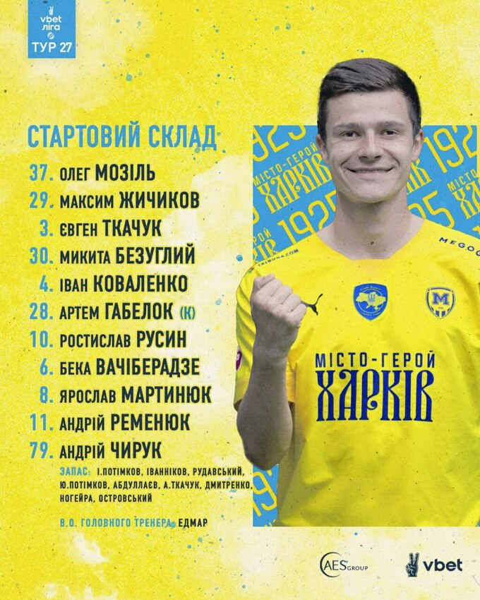 «Металлист 1925»: Мозиль, Жичиков, Ткачук, Безуглый, Коваленко, Габи, Русин, Вачиберадзе, Мартынюк, Ременюк, Чирук.
