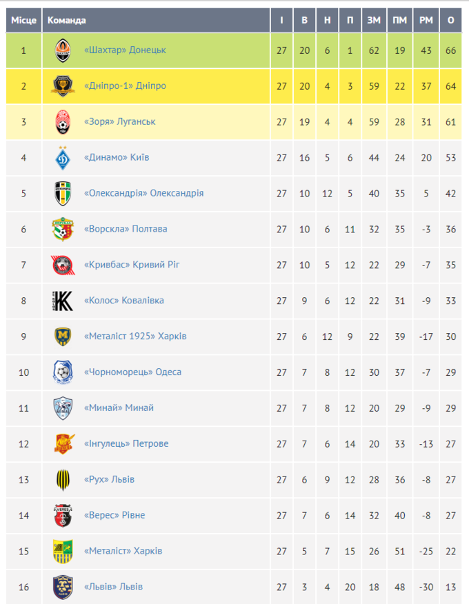 У команды 13 очков после 27 игр. Львовская команда проиграла последние 10 матчей и располагается на последней, 16-й позиции. У «Вереса», который находится на 14-м месте, что даем ему право играть в плей-офф УПЛ за право сохранить прописку, – 27 очков. «Львову» осталось сыграть 3 матча, поэтому команду из Ровно представители Львова уже не смогут догнать.