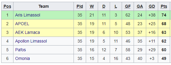 Чемпионство стало для «Ариса» первым за всю историю клуба. В следующем сезоне команда сыграет в квалификации Лиги чемпионов.