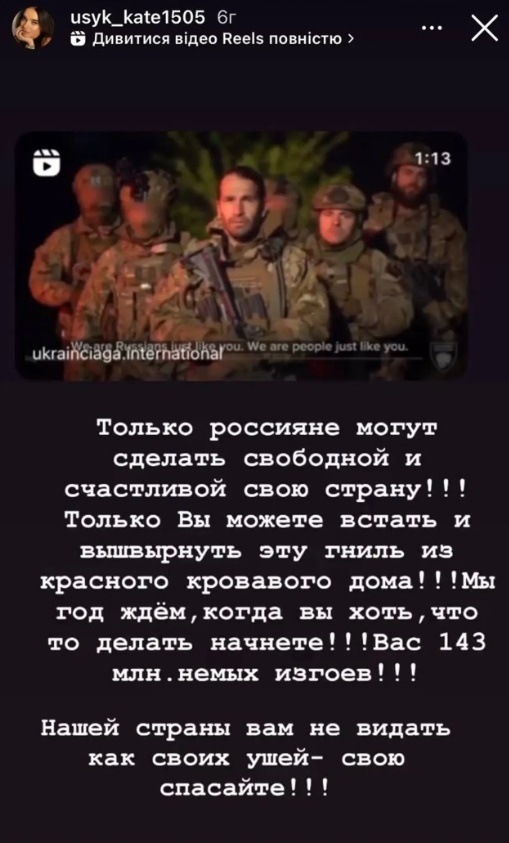 Нашей страны вам не видать как своих ушей, спасайте свою», – написала Усик в своем Инстаграме.