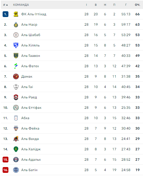 «Аль-Наср» остается в чемпионской гонке за два тура до конца, уступая три очка лидеру, «Аль-Иттихаду», который взял верх над командой «Аль-Батин» (1:0) благодаря голу Ромариньо.