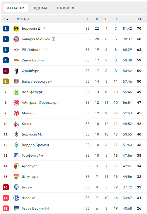 В борьба за золото Боруссия Д имеет перевес в 2 очка над Баварией.