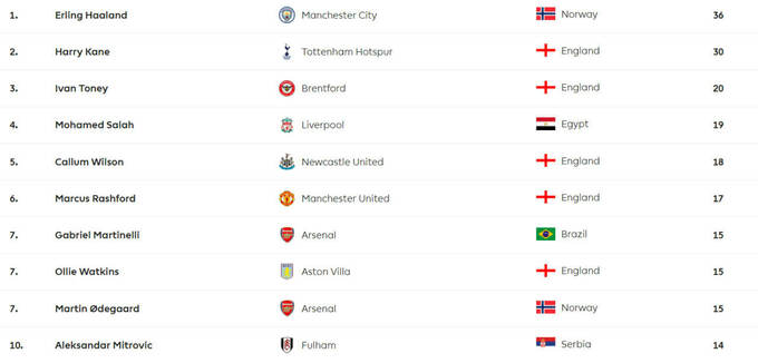 Холанд – лучший бомбардир АПЛ сезона 2022/23. Кто в десятке?