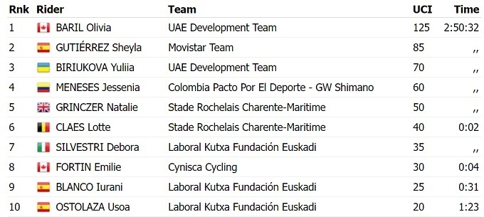 Вчера, 28 мая украинская велогонщица Юлия Бирюкова заняла третье место на престижной испанской однодневке категории 1.1 Гран-при Эйбара. В финишном спринте из пяти человек она уступила только партнерше по команде «UAE Development Team» канадке Оливии Бэрил и испанке Шейле Гутьеррес из «Movistar».