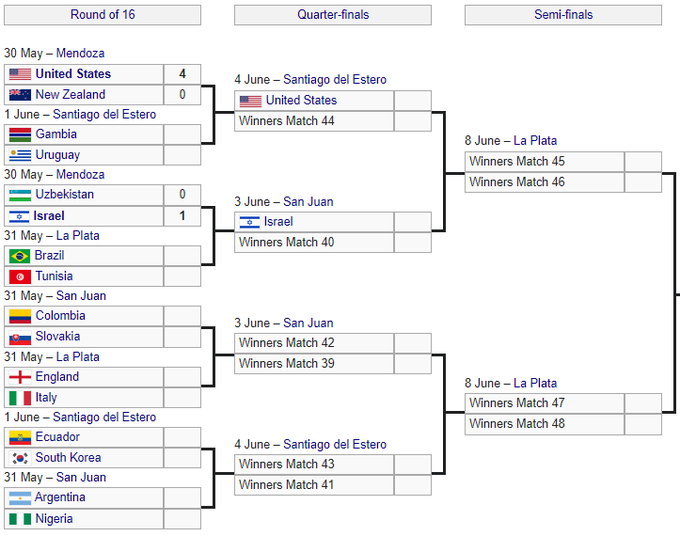 В четвертьфинале Израиль сыграет против победителя пары между Бразилией U-20 и Тунисом U-20.