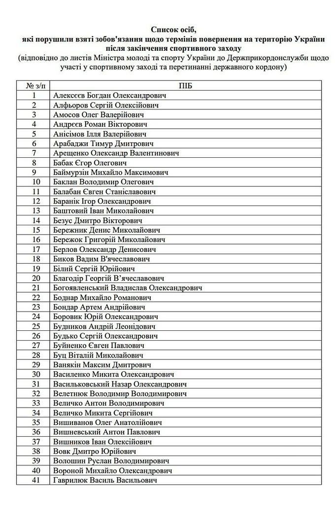 Министерство молодежи и спорта Украины. подготовило список из 236 атлетов, которые остались за границей, хотя были обязаны вернуться после сборов или соревнований.