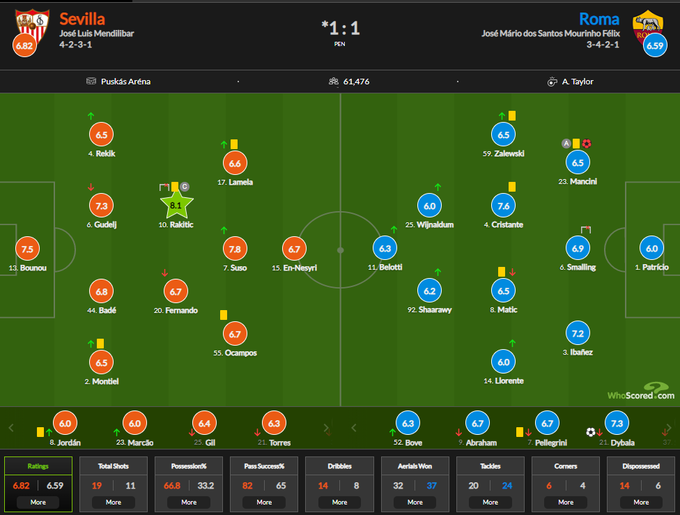 Оценки WhoScored за матч Севилья – Рома – 1:1, пен. 4:1