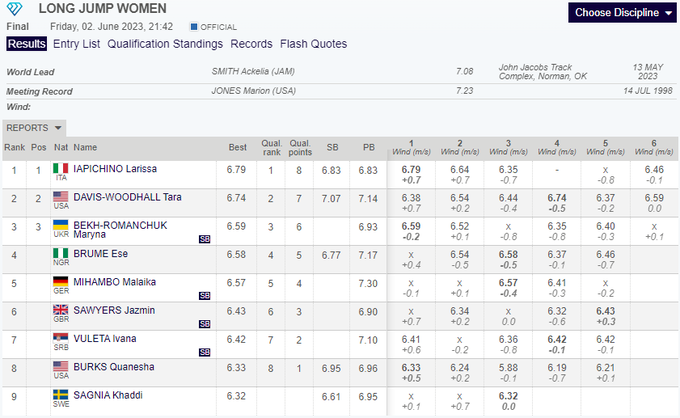 - 1. Лариса Япичино (Италия) – 6.79 метра