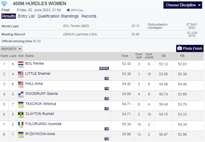 Украинская спортсменка Марина Бех-Романчук завоевала бронзовую награду на 3-м этапе Бриллиантовой лиги 2023 в Италии.