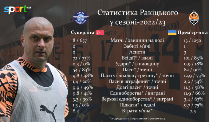 Но… Как известно, все познается в сравнении, а потому стоит просто глянуть, как тот же Ракицкий выглядел в первой части нынешнего сезона в «Адана Демирспоре». Причем буквальное сравнение игровых показателей опытного центрбека будет весьма корректным и отражающим всю разницу, имеющуюся на данный момент между интенсивностью и качеством футбола в среднем между турецкой Суперлигой и украинской Премьер-лигой.