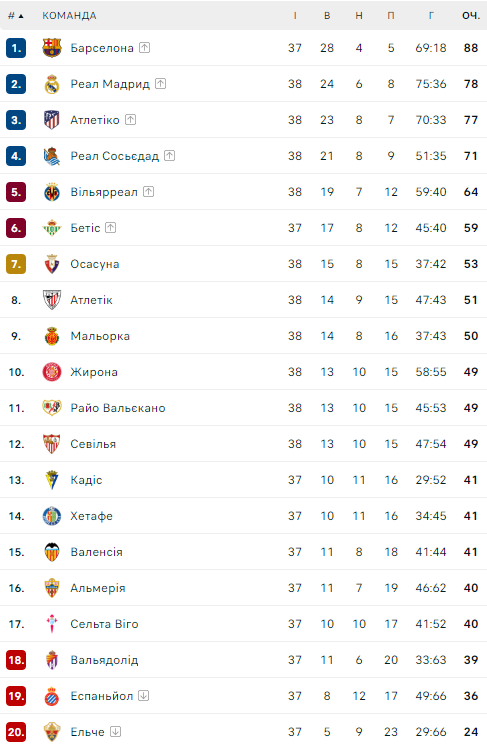 Благодаря победе «Осасуна» заняла 7-е место в Ла Лиге и завоевала путевку в Лигу конференций.