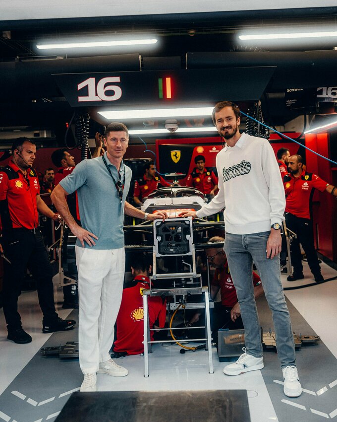 ВИДЕО. Двойной фейспалм. Левандовски с Медведевым посетили боксы Ферарри