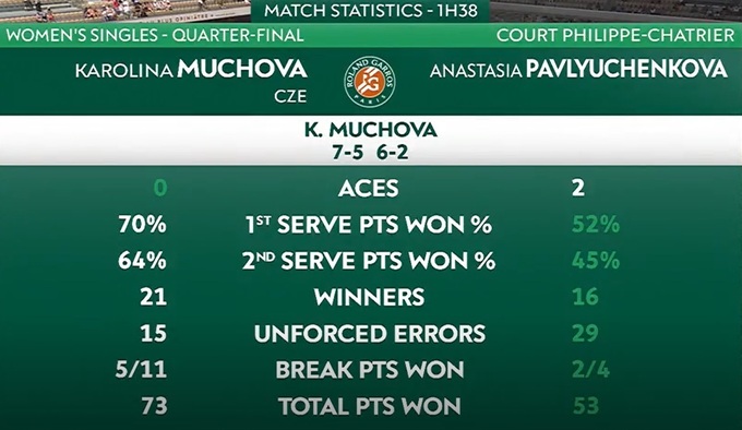 Чешская теннисистка Каролина Мухова (№43 WTA) стала первой полуфиналисткой Открытого чемпионата Франции по теннису в одиночном разряде.