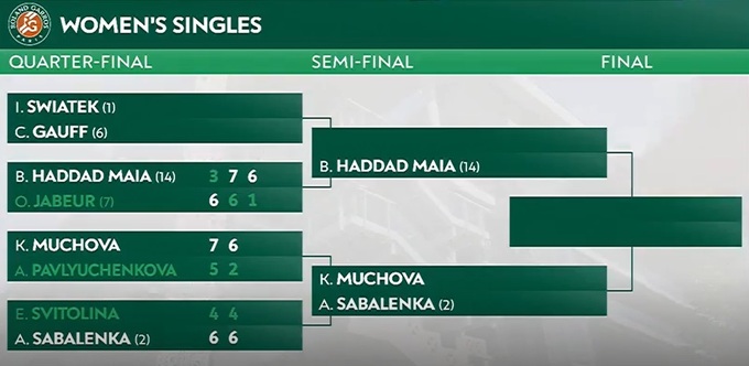 В полуфинале Хаддад Майя сразится с победительницей матча Ига Свёнтек (№1 WTA) – Кори Гауфф (№6 WTA).