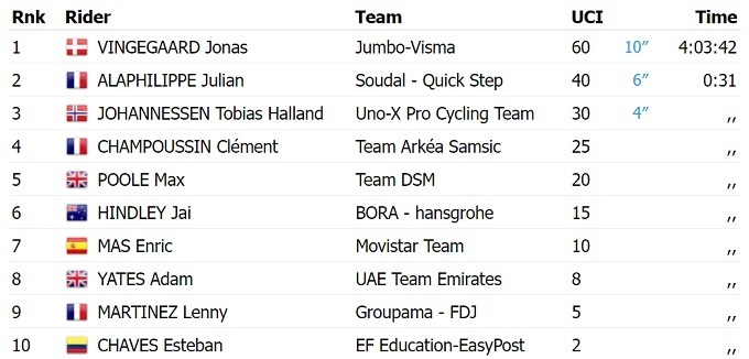 Эта победа позволила Вингегору перехватить лидерство в общем зачете Критериума Дофине.