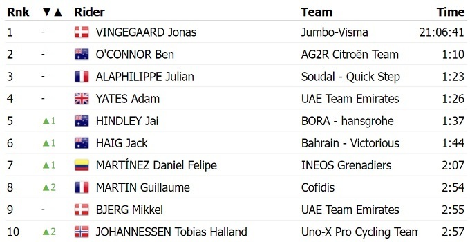 Лидерство в общем зачете сохранил датчанин Йонас Вингегор из команды «Jumbo Visma», который вчера выиграл пятый этап.