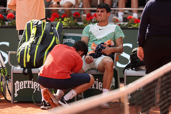 20-летний испанец играл в два-три удара и проиграл оставшиеся два сета на одной ноге.