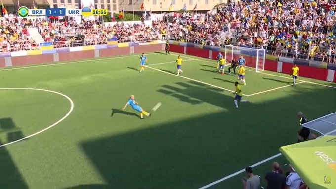 Бразилия открыла счет на 12-й минуте, однако Андрей Мельник уравнял ситуацию на 20-й минуте (1:1).