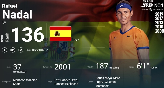 Надаль впервые за 20 лет покинул первую сотню мирового рейтинга