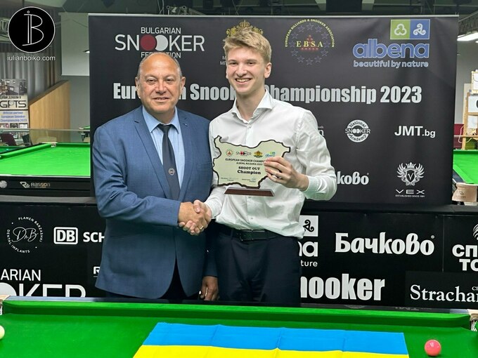 Украинский снукерист Юлиан Бойко стал победителем чемпионата Европы 2023 по снукеру в дисциплине Shoot Out, который состоялся в городе Албена, Болгария.