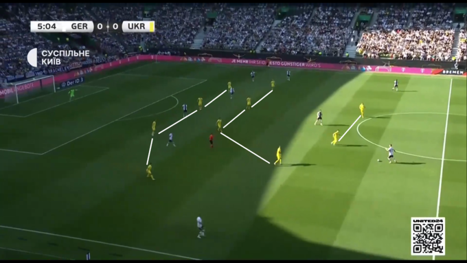 Осознанно или нет, однако сборная Украины не пыталась всеми правдами и неправдами контролировать мяч не то, чтобы больше, а хотя бы на одном уровне с соперником. В итоге у «сине-желтых» статистики насчитали всего 34% владения мячом против 66% у немцев.