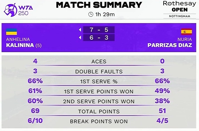 Ангелина Калинина (Украина) – Нурия Паррисас Диас (Испания) – 7:5, 6:3
