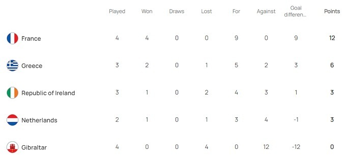 Состоялись еще два матча отбора на Евро-2024 в группе B. Сборная Франции при довольно спорном судействе Антониу Матеу Лаоса минимально обыграла Грецию. Среди прочего, он показал лишь желтую карточку Константиносу Мавропаносу за брутальный удар шипами в голову Антуану Гризманну. Правда, спустя 20 минут Мавропанос поле таки покинул, получив вторую желтую.