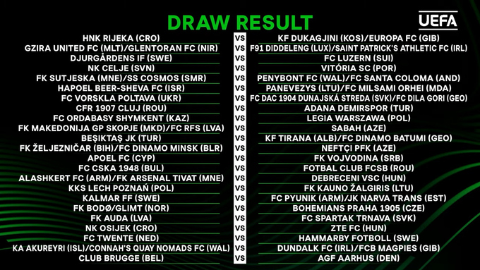 21 июня в 14:00 по Киеву в швейцарском Ньоне прошла жеребьевка второго отборочного раунда (Q2) Лиги конференций 2023/24.
