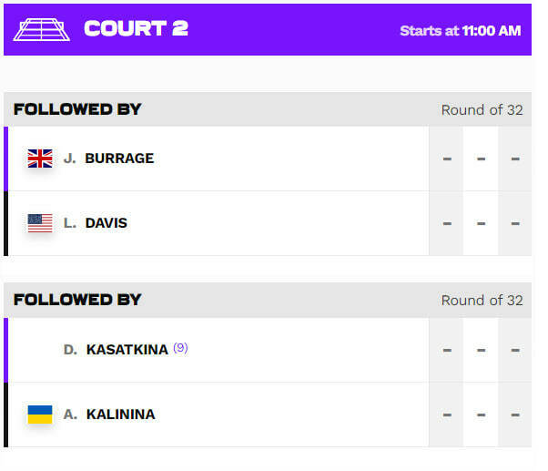 Поединок между Ангелиной и Дарьей запланирован на 26 июня. Встреча состоится вторым запуском на корте №2. Ориентировочное время начала поединка – 17:00 по Киеву.