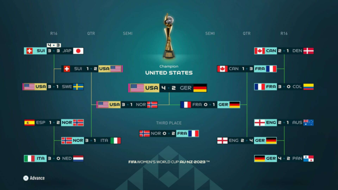 По прогнозу FIFA 23, в матче за золото сойдутся Германия и США. Чемпионками мира станут американки, которым спрогнозирована победа со счетом 4:2.