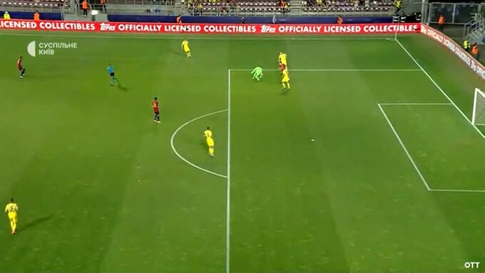 Вратарь украинской команды Руслан Нещерет выпустил мяч из рук. Испанец забил гол в пустые ворота, но судья не засчитал взятие ворот.