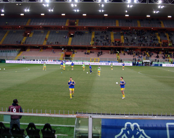 Генуэзцы произвели достаточно приятное впечатление – открытые и вежливые люди, объяснят, как пройти, даже если их не спрашиваешь. По совету одного пенсионера отправился через узкие переулки и действительно попал, куда нужно. Если вы воспитаны на старых итальянских фильмах вроде «Похитителей велосипедов», то сейчас, конечно, ситуация в стране значительно лучше. По крайней мере, у меня за целых два дня ничего не украли, на улицах чисто и ухожено. Правда, когда я решил изобразить из себя чистюлю в ложе прессы и спросил у охранника, где находится мусорное ведро (нужно было выкинуть стаканчик из-под кофе), стадионный служитель посмотрел на меня, как на последнего идиота, а затем примостил мой стаканчик на каком-то электроящике, торчащем на стене. Так что, они, конечно, не немцы. Итальянцы они.