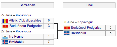 30 июня в финальном матче предварительного раунда встретились Будучност (Черногория) и Брейдаблик (Исландия).