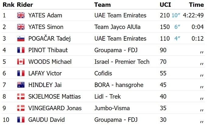 Британский велогонщик команды «UAE Emirates» Адам Йейтс стал победителем первого этапа Тур де Франс-2023. На финише он опередил своего брата-близнеца Саймона из «Jayco AlUla». Топ-3 замкнул еще один гонщик «UAE Emirates», словенец Тадей Погачар.