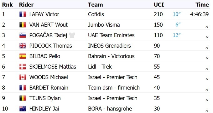 Лидерство в общем зачете сохранил другой гонщик «UAE Emirates», британец Адам Йейтс, который вчера выиграл первый этап.