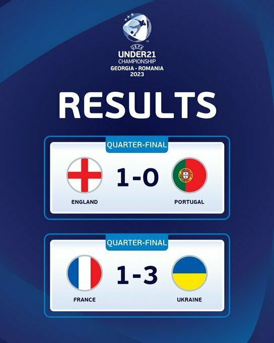 В полуфиналах ЧЕ-2023 вечером 5 июля сборная Украины сыграет с командой Испании (в 22:00 в Бухаресте на стадионе Стяуа), а Англия – с Израилем (в 19:00 в Батуми).