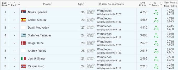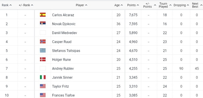 Топ-10 рейтинга ATP