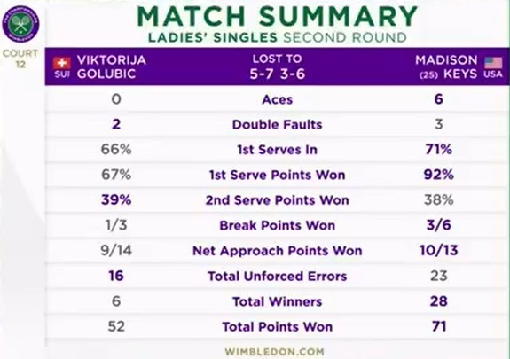 Мэдисон Киз (США) – Виктория Голубич (Швейцария) – 7:5, 6:3